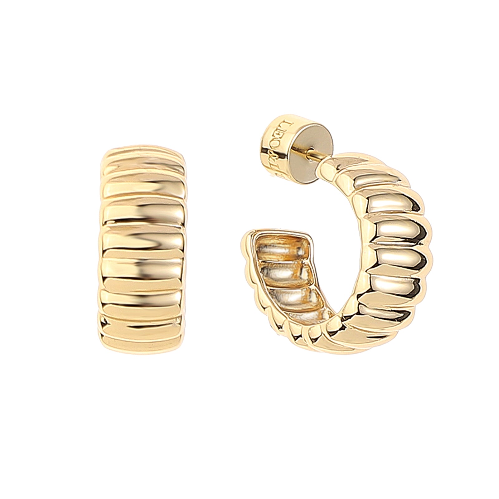 Add a touch of uniqueness with our Ribbed Hoop Earrings. These finely crafted hoops feature simple ridges, creating a subtle yet elegant look. With a wider stance and smaller build, they are lightweight and perfect for a night out. Elevate your style with these one-of-a-kind earrings.
