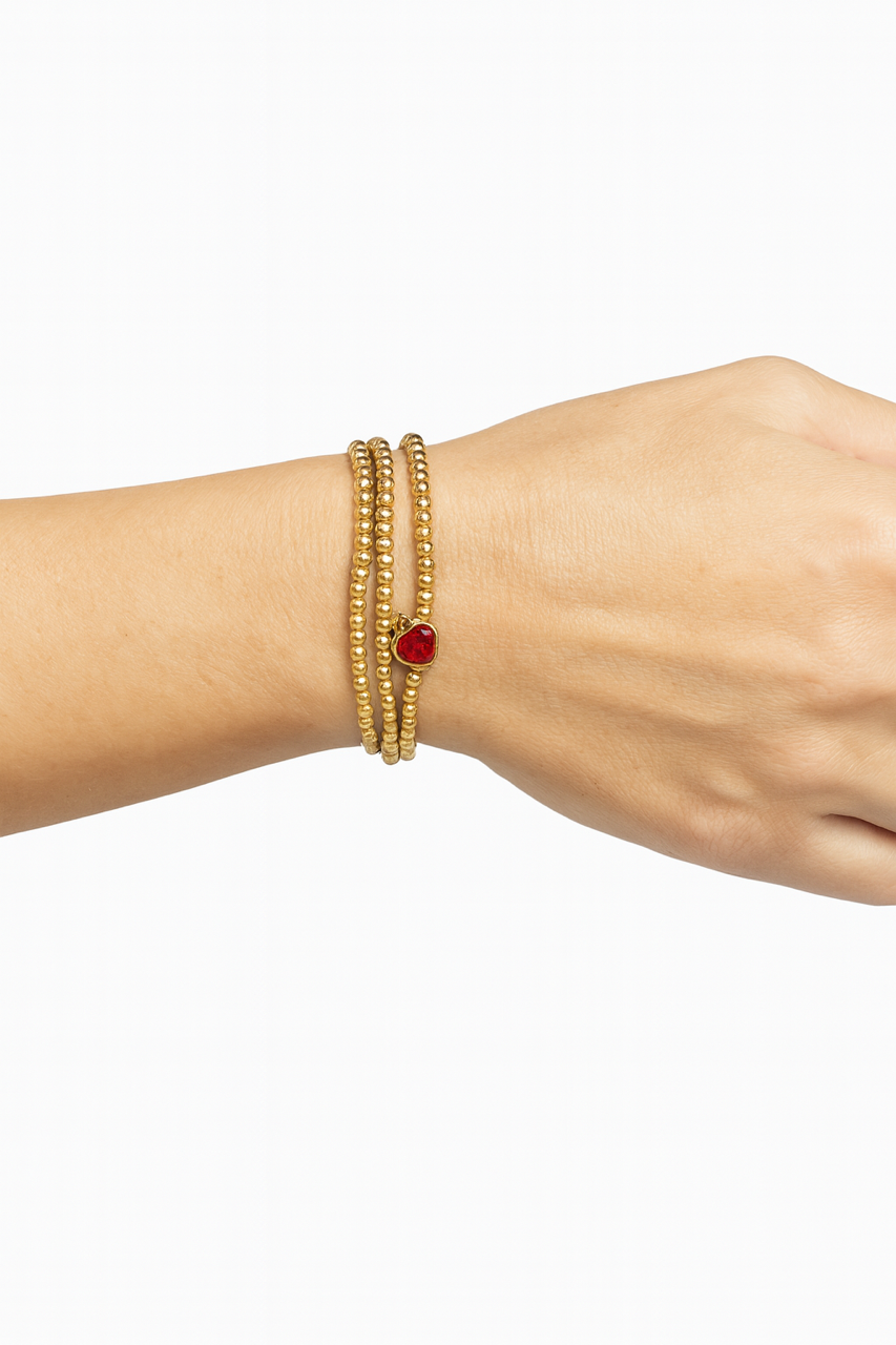 Heart Charm Beaded Bracelet Set features layers of polished gold-tone beads finished with a bold, faceted heart charm for the perfect pop of color. Designed to be worn stacked or styled individually, this set adds instant interest to any wrist. The stretch fit makes them easy to slip on for everyday wear. Effortlessly playful yet elevated, they’re the kind of pieces you’ll reach for daily. Sold as a multi-bracelet set for ready-made stacking style.